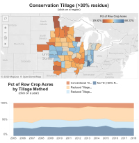 Interactive maps and time series charts showing the adoption and impact of conservation practices in the Corn Belt are now online in a powerful new data visualization tool based on the Operational Tillage Information System (OpTIS). OpTIS analyzed publicly available satellite data to document the adoption of conservation practices across the Corn Belt from 2005 to 2018.